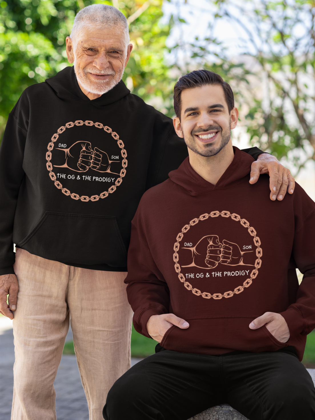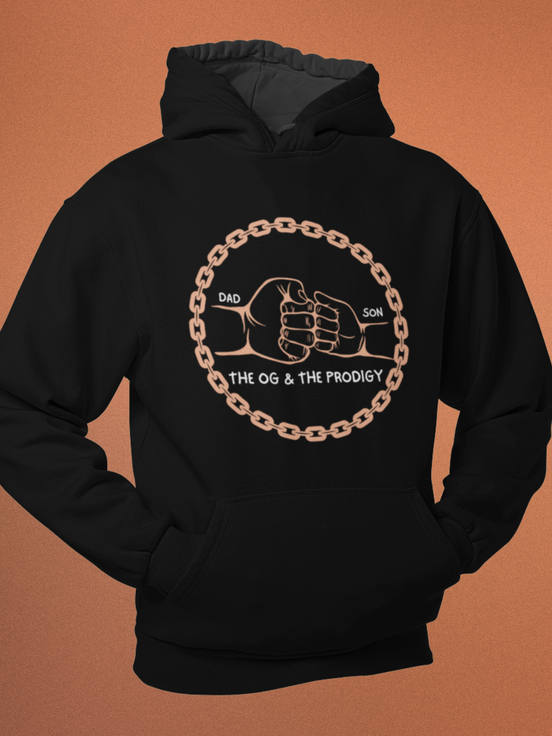Introducing the OG & The PRODIGY Hoodie, a tribute to the often unexpressed admiration and powerful bond between fathers and sons. This unique design by HUSTLE CLAN celebrates the pure but one of the most underrated love in the world. With intricate details and premium quality, this hoodie embodies the essence of the ultimate OG and his prodigy.